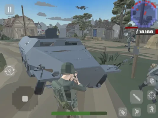 WWII Simulator 3D is a third-person shooter that takes place on WW2. You play as old private John Ryans from Scary Company! The single-player campaign is the call of epic moments, story cutscenes and heroic duty. Become a creepy polygon grandpa soldier that will go from D-Day in Normandy, through the Battle of Bulge in horror and finally to Berlin. Experience also the Pacific Front in the battle against Japan army and fight in hacksaw ridges, Okinawa.Traditional single-player 3rd person shooter missions are accompanied by special tasks for pvt John, like shooting planes with AAA guns, saving private in trouble, defending your position with mortar flamethrower, destroying tanks or bunkers with a bazooka and sniping enemies at long distances.