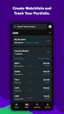 • Link your portfolio to Yahoo Finance and keep tabs of your holdings on the go. See your holding’s daily performance at a glance in the “Home” tab