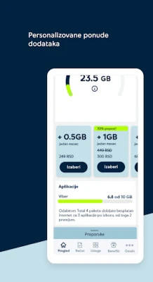 • Proveri stanje računa i potrošnje aktivnih usluga i dodataka
