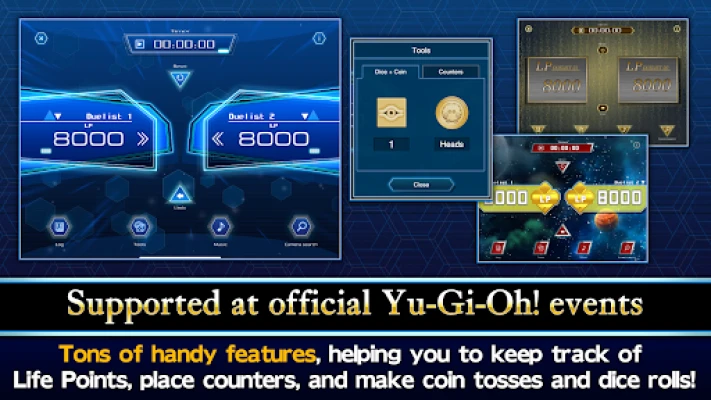 Installed with many useful features like calculating Life Points, tossing coins, rolling Dices, placing/removing Counters etc.