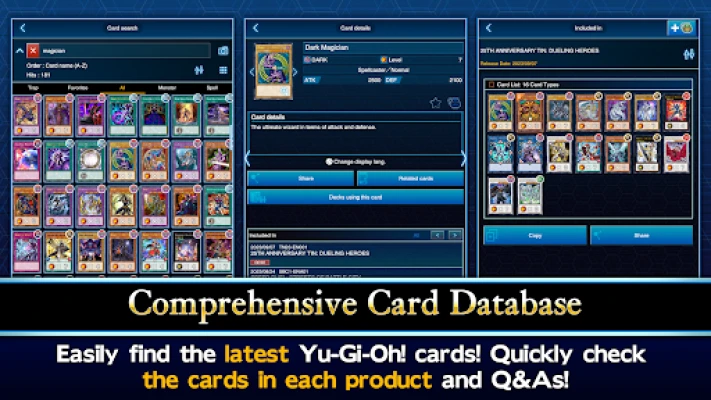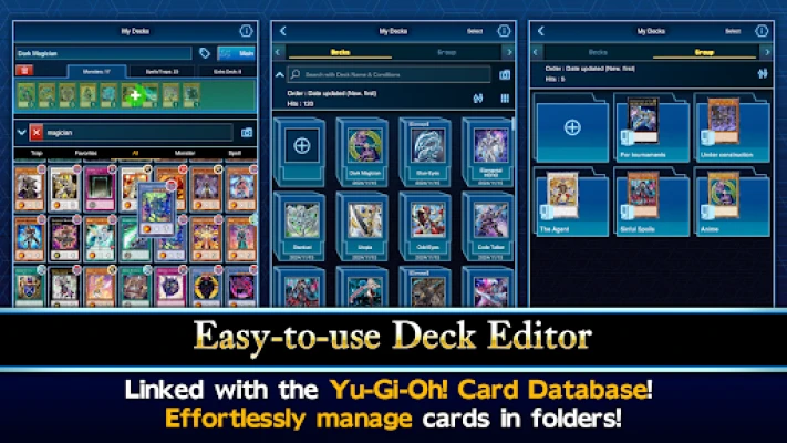 - Manage your Decks by linking it to the Yu-Gi-Oh! TCG Card Database