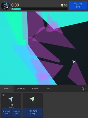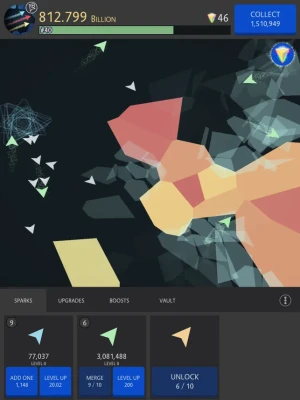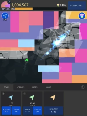 Create and merge sparks that dash about the playing field, transforming and breaking shards with colorful explosions
