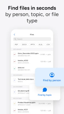 • File & Photo Sharing: Share files and photos in the relevant chat and easily find them later, right in context.