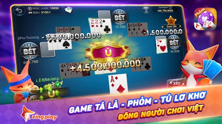 ZingPlay luôn được biết tới là cổng game bài uy tín lâu đời với 15+ năm đồng hành cùng người chơi Việt trong và ngoài nước, đặc biệt là các trò chơi bài dân gian như Tiến Lên - game quốc dân cho mọi lứa tuổi, Tá Lả (Phỏm/ tú lơ khơ) & Mậu Binh (Poker VN/ Chinese Poker VN) - 2 game bài thử thách tư duy và quyết định qua từng nước bài và Sâm Lốc - phiên bản miền Bắc mới lạ của Tiến lên miền nam.